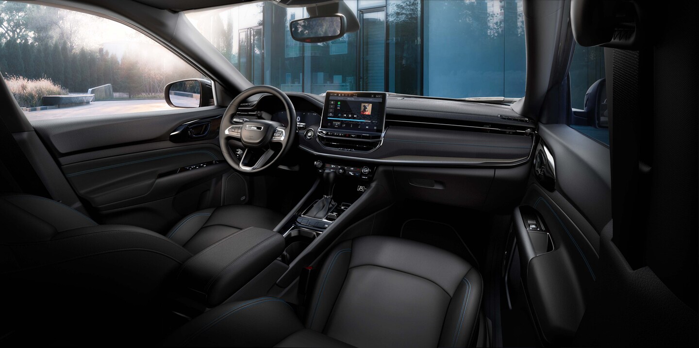 - Jeep Compass Limited: Features 18-inch painted diamond cut wheels, leather upholstery, and a 10.1-inch touchscreen.
