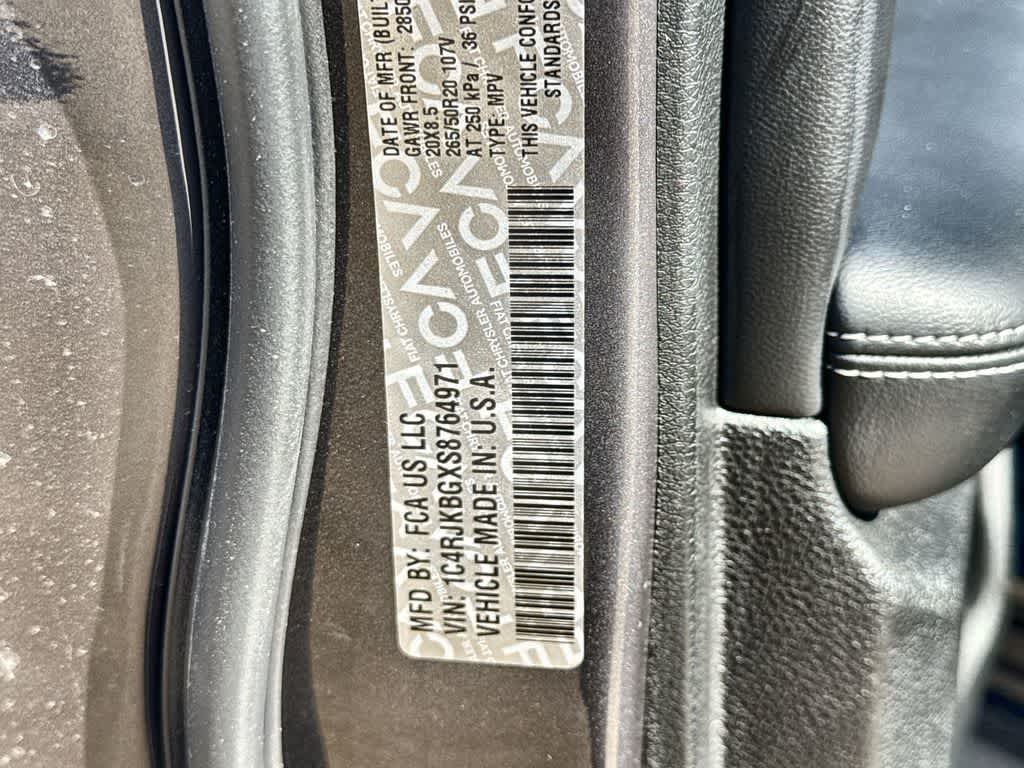 LUXURY TECH GROUP II Power Tilt/Telescope Steering Column, Integrated Off-Road Camera, Surround View Camera System, Rain Sensitive Windshield Wipers, ParkSense Front/Rear Park Assist w/Stop, Passive Entry - Front/Rear Doors, Liftgate, Wireless Charging Pad, Rear Back Up Camera Washer, Ventilated Front Seats, Auto Dim Exterior Driver Mirror, 2nd Row Manual Window Shades, Intersection Collision Assist System, Rearview Autodim Digital Display Mirror, Memory Steering Column, BLACK APPEARANCE PACKAGE Tires: 265/50R20 Performance A/S, Wheels: 20 x 8.5 Gloss Black Painted Aluminum, Gloss Black Exterior Accents, DUAL PANE PANORAMIC SUNROOF Interior Rear Facing Camera, TRANSMISSION: 8-SPEED AUTOMATIC (850RE) (STD), ENGINE: 3.6L V6 24V VVT UPG I W/ESS (STD).