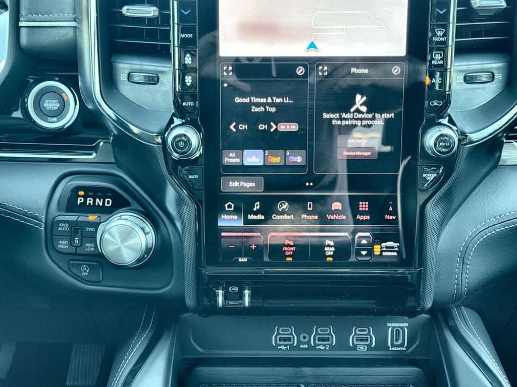 LIMITED LEVEL A EQUIPMENT GROUP Surround View Camera System, LED CHMSL Lamp, Tri-Fold Tonneau Cover, Traffic Sign Recognition, RamBox Cargo Management System, Hands-Free Active Driving Assist System, Head Up Display, Evasive Steer Assist, Drowsy Driver Detection, Exterior 115V AC Outlet, Intersection Collision Assist System, Smartphone As A Key Capable, 14.4 Touchscreen Display, Radio: Uconnect 5 Nav w/14.4 Display, 240 Amp Alternator, 12-Way/1-Way Trailer Connector, NIGHT EDITION Tires: 285/45R22XL BSW All Season, Black Headlamp Bezels, Wheels: 22 x 9 Premium Black Aluminum, Pirelli Brand Tires, Accent Color Door Handles, Body Color Front Bumper, Body Color Rear Bumper w/Step Pads, RAM Grille Badge - Black, Black Painted Exterior Mirrors Caps, Accent Color Premium Power Mirrors, Sport Performance Hood, Black Exterior Truck Badging, Black Day Light Opening Moldings, Accent Color Tailgate Handle, Dual Exhaust w/Black Tips, Black Grille Surround Texture 7 Black, Black Tail Lamp Bezels, TRANSMISSION: 8-SPEED AUTOMATIC (8HP75) (STD), ENGINE: 3.0L I6 HURRICANE HO TWIN TURBO ESS (STD), DUAL-PANE PANORAMIC SUNROOF LED Dome/Reading Lamp, Dome Dual LED Reading Lamp.