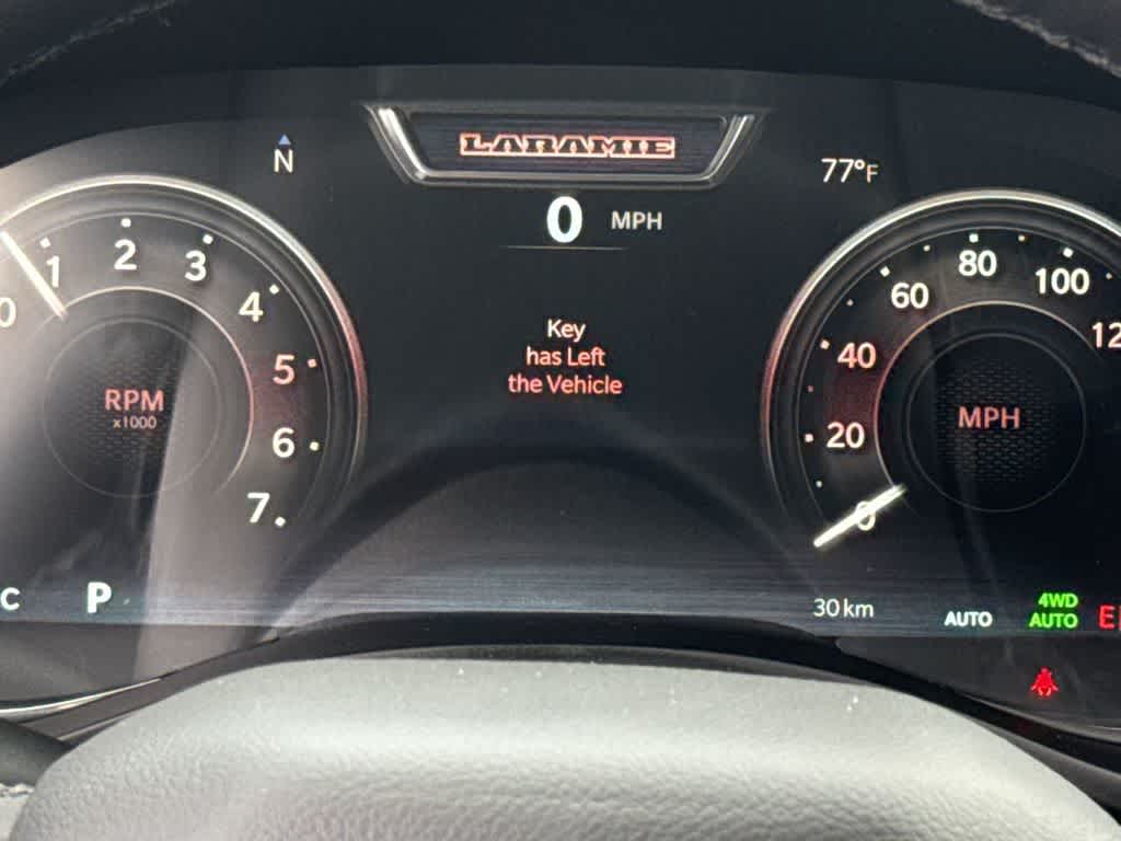 NIGHT EDITION Black Headlamp Bezels, Wheels: 22 x 9 Forged Aluminum, Tires: 285/45R22XL BSW All Season, Pirelli Brand Tires, Proximity Approach/Departure Lamps, Anti-Spin Differential Rear Axle, Accent Color Door Handles, Black Interior Accents, Body Color Front Bumper, Grille Surround 3 Black Texture 2 Black, Body Color Rear Bumper w/Step Pads, RAM Grille Badge - Black, Black Painted Exterior Mirrors Caps, Exterior Mirrors Approach Lamps, Accent Color Premium Power Mirrors, Sport Performance Hood, Black Exterior Truck Badging, Accent Color Tailgate Handle, Dual Exhaust w/Black Tips, Black Tail Lamp Bezels, LARAMIE LEVEL 2 EQUIPMENT GROUP Rain Sensitive Windshield Wipers, Front Passenger Interactive Display, Secondary Active Grille Shutters, Smartphone As A Key Capable, 14.4 Touchscreen Display, Dual Wireless Charging Pad, Radio: Uconnect 5 Nav w/14.4 Display, harman/kardon® 19 Speaker Premium Sound, Cluster 12 TFT Color Display, Power Tailgate, MOPAR BLACK TUBULAR SIDE STEPS, TRANSMISSION: 8-SPEED AUTOMATIC (8HP75) (STD), ENGINE: 3.0L I6 HURRICANE SO TWIN TURBO ESS (STD).