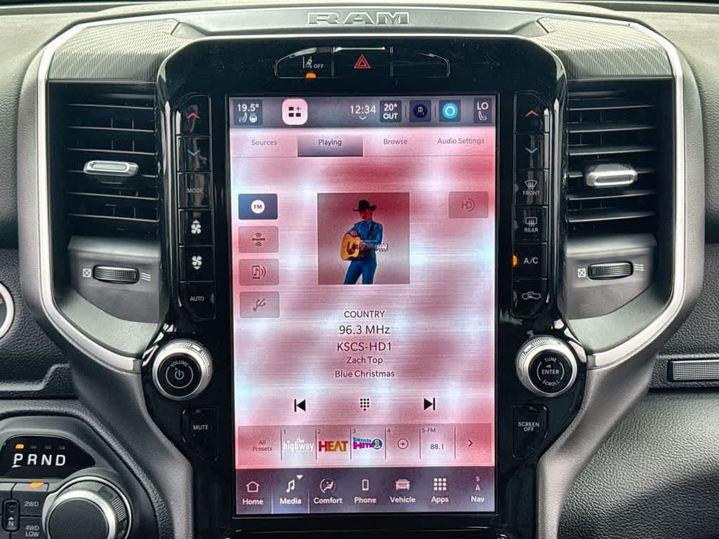 BIG HORN LEVEL 2 EQUIPMENT GROUP SiriusXM Radio Service, Power Adjustable Pedals, Leather Wrapped Steering Wheel, 12 Touchscreen Display, Glove Box Lamp, Auto Power-Folding Mirrors, 115V Auxiliary Rear Power Outlet, Media Hub w/2 Charge Only USBs, Heated Front Seats, Security Alarm, Black Premium Power Mirrors, Premium Overhead Console, 9 Amplified Speakers w/Subwoofer, Disassociated Touchscreen Display, Body Color Fender Flares, Remote Tailgate Release, 115V Auxiliary Power Outlet, LED Dome Lamp w/On/Off Switch, Universal Garage Door Opener, 2nd Row In Floor Storage Bins, Sun Visors w/Illuminated Vanity Mirrors, LED Footwell Lighting, Rear Window Defroster, Rear View Auto Dim Mirror, Rear Power Sliding Window, GPS Navigation, Overhead LED Lamps, Wheels: 20 x 9 Aluminum Chrome Clad, ENGINE: 3.0L I6 HURRICANE SO TWIN TURBO ESS Aux Battery, 700 Amp Maintenance Free Battery, Active Noise Control System, GVWR: 7,100 lbs, 3.55 Rear Axle Ratio, Dual Rear Exhaust w/Bright Tips, Start-Stop Dual Battery System, 230 Amp Alternator, NIGHT EDITION Tires: 275/55R20 OWL All Season, Bridgestone Brand Tires, Accent Color Premium Power Mirrors, Exterior Mirrors w/Supplemental Signals, Black Headlamp Bezels, Exterior Mirrors Courtesy Lamps, Grille Black Surround Black Mesh, Auto Power-Folding Mirrors, Wheels: 20 x 9.0 Aluminum Painted Clad, Auto Dim Exterior Driver Mirror, Black Exterior Truck Badging, Anti-Spin Differential Rear Axle, Accent Color Door Handles, Accent Color Tailgate Handle, Black Interior Accents, Dual Exhaust w/Black Tips, Body Color Front Bumper, Body Color Rear Bumper w/Step Pads, Black Tail Lamp Bezels, RAM Grille Badge - Black, Black Painted Exterior Mirrors Caps, MOPAR BLACK TUBULAR SIDE STEPS, TRANSMISSION: 8-SPEED AUTOMATIC (8HP75).