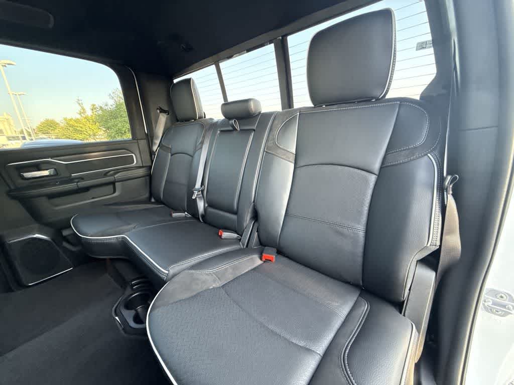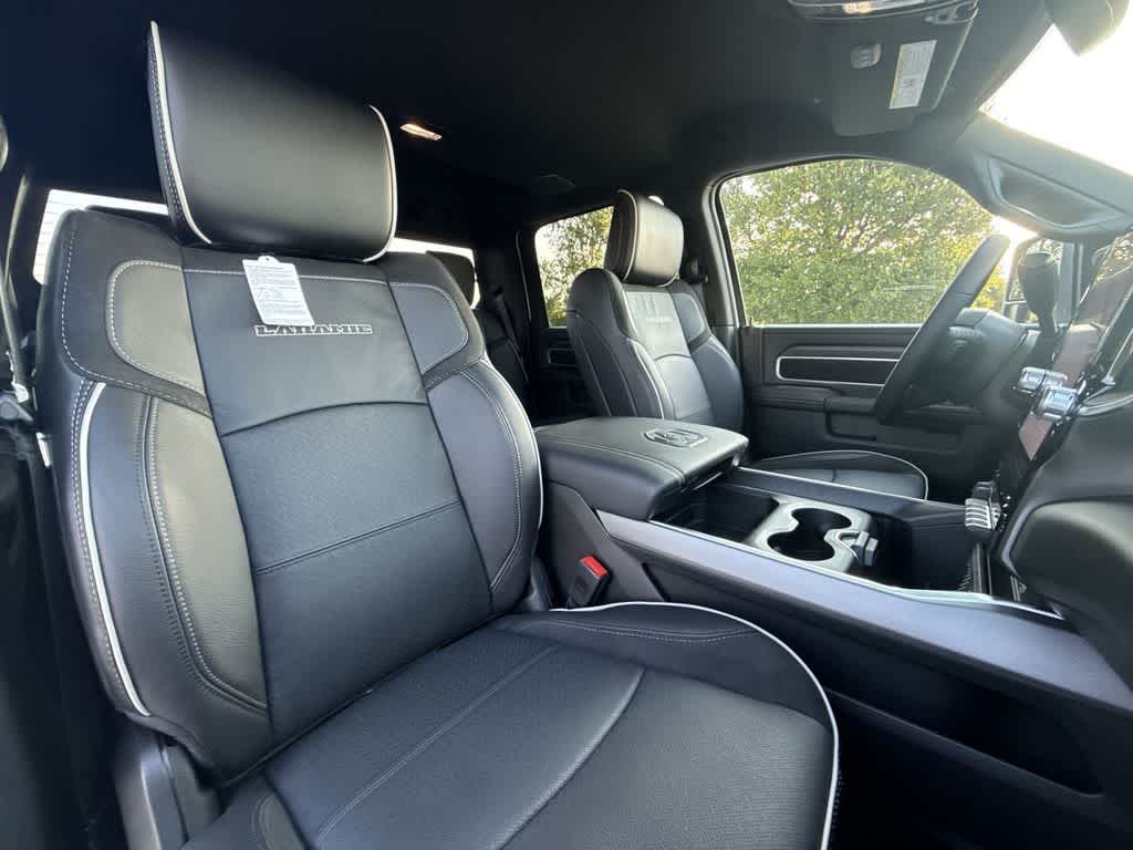 NIGHT EDITION Tires: LT285/60R20E OWL On/Off Road, Black Exterior Truck Badging, Wheels: 20 x 8.0 Black Painted Aluminum, Gloss Black Grille Billets/Accents, Body Color Grille-Surround, Sport Performance Hood, Black Exterior Mirrors, LARAMIE LEVEL 1 PLUS EQUIPMENT GROUP CTR Stop Lamp w/Cargo View Camera, Rain Sensitive Windshield Wipers, Power Adjustable Pedals w/Memory, LED Bed Lighting, Traffic Sign Recognition, Adaptive Steering System, Auto Dim Exterior Mirror, Anti-Spin Differential Rear Axle, Heated Second Row Seats, Drowsy Driver Detection, MOPAR Deployable Bed Step, Foam Bottle Insert (Door Trim Panel), Active Lane Management System, Power Heated Fold Telescopic Mirrors w/Memory, MOPAR Spray In Bedliner, Remote Tailgate Release, Auto High Beam Headlamp Control, Exterior Mirrors w/Memory, 2nd Row In Floor Storage Bins, Auto Dim Exterior Passenger Mirror, Auto Adjust In Reverse Exterior Mirrors, TRANSMISSION: 8-SPEED TORQUEFLITE HD AUTOMATIC, BLACK, LEATHER TRIMMED BUCKET SEATS Bucket Seats, Dual Wireless Charging Pad, Ventilated Front Seats, Radio/Driver Seat/Mirrors/Pedals Memory, Full Length Upgraded Floor Console.