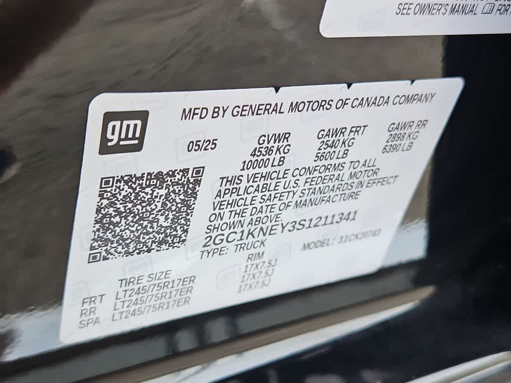 CONVENIENCE PACKAGE includes (UF2) Cargo bed LED lighting, (CJ2) dual-zone automatic climate control, (A2X) 10-way power driver seat including power lumbar, (N37) manual tilt/telescoping steering column, (T3U) LED fog lamps, ASSIST STEPS, CHROMED, 6 RECTANGULAR (factory installed), REMOTE START PACKAGE includes (BTV) Remote Start, (UTJ) Theft Deterrent System and (C49) rear-window defogger, HEAT PACKAGE includes (KA1) Heated driver and passenger seats and (KI3) Heated steering wheel, AUDIO SYSTEM, CHEVROLET INFOTAINMENT 3 PREMIUM SYSTEM with Google built-in compatibility (select service plan required, terms and limitations apply) including navigation capability, 13.4 diagonal HD color touchscreen, includes multi-touch display, AM/FM stereo, Bluetooth® streaming audio for music and most phones; featuring Wireless Apple CarPlay® and Wireless Android Auto® capability for compatible phones, advanced voice recognition, in-vehicle apps, personalized profiles for infotainment and vehicle settings (STD), TRANSMISSION, ALLISON 10-SPEED AUTOMATIC.