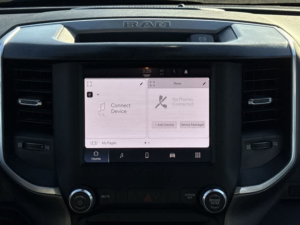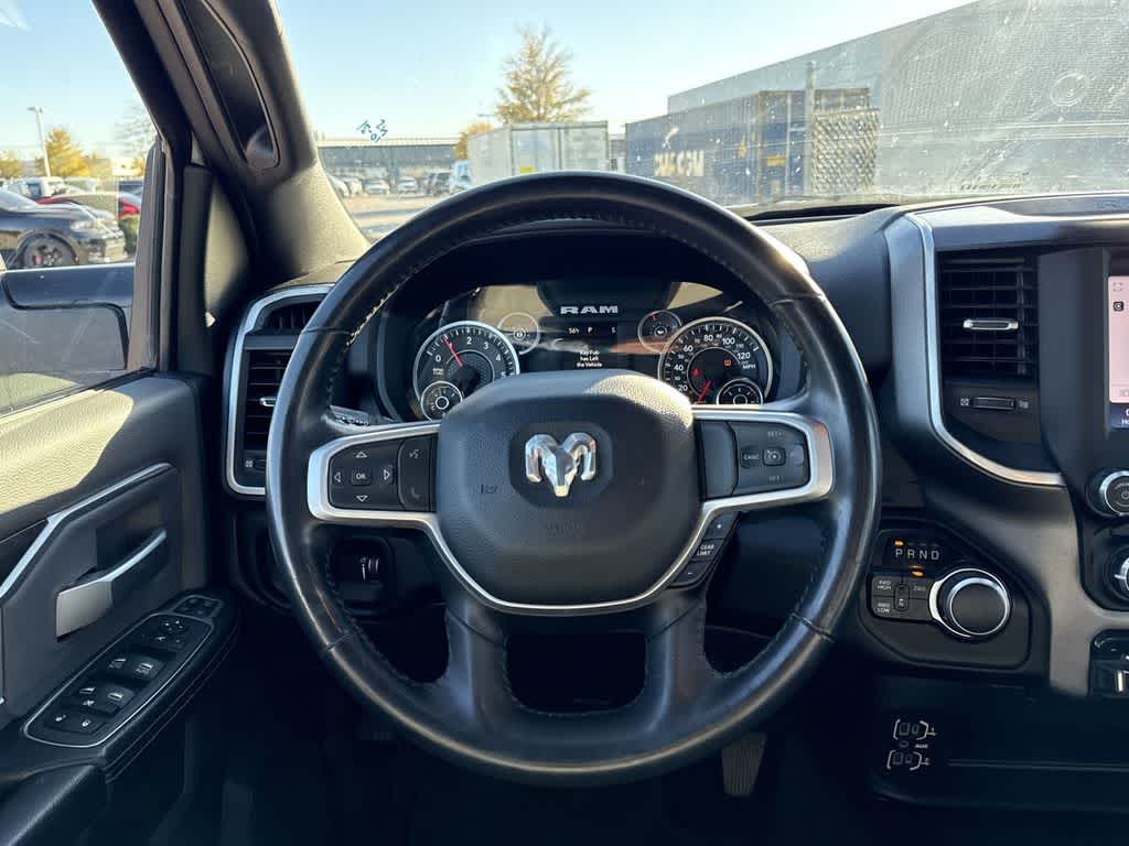 DIESEL GRAY/BLACK, PREMIUM CLOTH 40/20/40 BENCH SEAT Storage Tray, Rear 60/40 Folding Seat, Front Armrest w/Cupholders, Remote USB Port - Charge Only, Front Center Seat Cushion Storage, Manual Adjust 4-Way Front Passenger Seat, Power Adjust 8-Way Driver Seat, Front Seat Back Map Pockets, Power 2-Way Driver Lumbar Adjust, CHROME FLAT CAB-LENGTH SIDE STEPS, ANTI-SPIN DIFFERENTIAL REAR AXLE, LEVEL 1 EQUIPMENT GROUP Google Android Auto®, For Details, Visit DriveUconnect.com, For More Info, Call 800-643-2112, Leather Wrapped Steering Wheel, Rear Dome w/On/Off Switch Lamp, Front Fog Lamps, Glove Box Lamp, Auto Power-Folding Mirrors, Footwell Courtesy Lamp, 4G LTE Wi-Fi Hot Spot, Radio: Uconnect 5 W w/8.4 Display, 8.4 Touchscreen Display, Foam Bottle Insert (Door Trim Panel), Wheels: 18 x 8.0 Polished Aluminum, Apple CarPlay®, Big Horn IP Badge, Power Adjustable Convex Aux Mirrors, Forward & Reverse Utility Lights, Locking Lower Glove Box, Selectable Tire Fill Alert, SiriusXM Satellite Radio, Power Heated Fold Telescope Mirrors, Exterior Mirrors w/Supplemental Signals, Steering Wheel Mounted Audio Controls, Exterior Mirrors Courtesy Lamps, Dual Glove Boxes, 2nd Row In Floor, TRANSMISSION: 6-SPEED AUTOMATIC (68RFE).